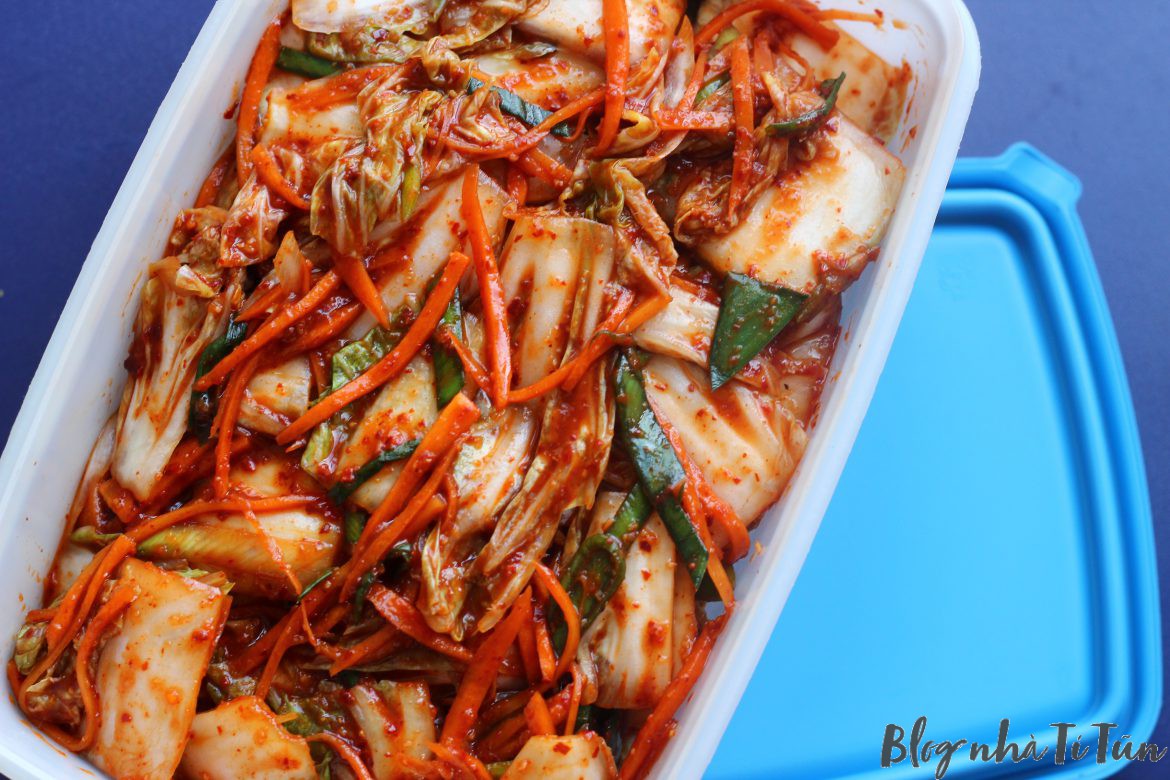 – Trộn đều cải thảo đã ngâm muối và làm sạch cùng hỗn hợp trộn kim chi nói trên, xếp vào âu và đậy kín. Kim chi để ở nhiệt độ phòng trong khoảng 1-1,5 ngày (nếu trời lạnh, bạn có thể để lâu hơn 1 chút cho đến khi đạt độ chua mong muốn) rồi cho vào tủ lạnh