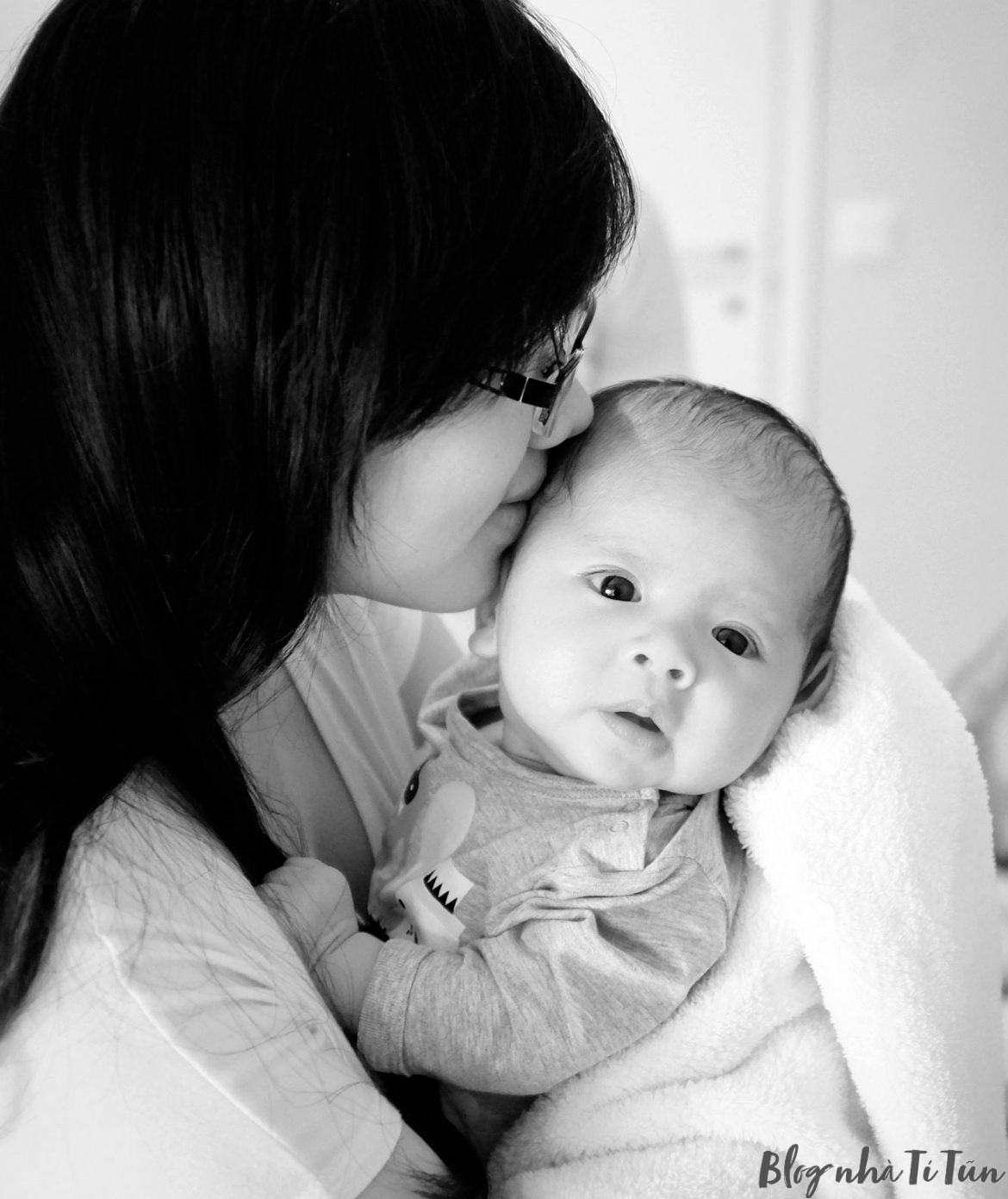 6. Nếu như ở VN, các em bé được tắm rửa sạch sẽ ngay khi ra khỏi bụng mẹ thì TT phải chờ đến 2 tuần mới được nhúng nước lần đầu tiên. Bà nội, bà ngoại của em thì cứ cuống quýt tít mù cả ngày chỉ với 1 câu hỏi: “Bao giờ cháu tôi được tắm”. Các bà cứ lo TT nóng bức khó chịu rồi khó ngủ, chậm lớn.. Thậm chí bà ngoại TT còn lấy dẫn chứng: bạn bà làm ở bệnh viện Việt Nam – Thụy Điển nói ngày trước có chuyên gia từ Thụy Điển sang, họ cũng tắm cho trẻ con ngay sau khi sinh ra, hay là cái bệnh viện này làm ăn vớ vỉn :D. Đem thắc mắc ấy cho bác sĩ của TT, bà cười và nói: việc tắm cho trẻ sơ sinh như vậy được áp dụng ở TĐ từ 20-30 năm trước rồi. Nghiên cứu khoa học gần đây chỉ ra rằng: tắm ngay cho trẻ là không cần thiết vì lớp nước ối còn sót lại trên người chính là 1 lớp bảo vệ cực tốt cho bé trong những ngày đầu tiên. Ngay cả chuyện quấn tã chặt cho bé khi ngủ để bé đỡ giật mình cũng bị bác sĩ phản đối. Đơn giản vì “giật mình” là biểu hiện rất bình thường của các bé sơ sinh. Nếu quấn chặt tã hoặc đắp quá nhiều lớp chăn/quần áo cho bé khi ngủ sẽ không những không tốt cho sự phát triển của bé mà còn có khả năng gây ra hội chứng đột tử ở trẻ sơ sinh.