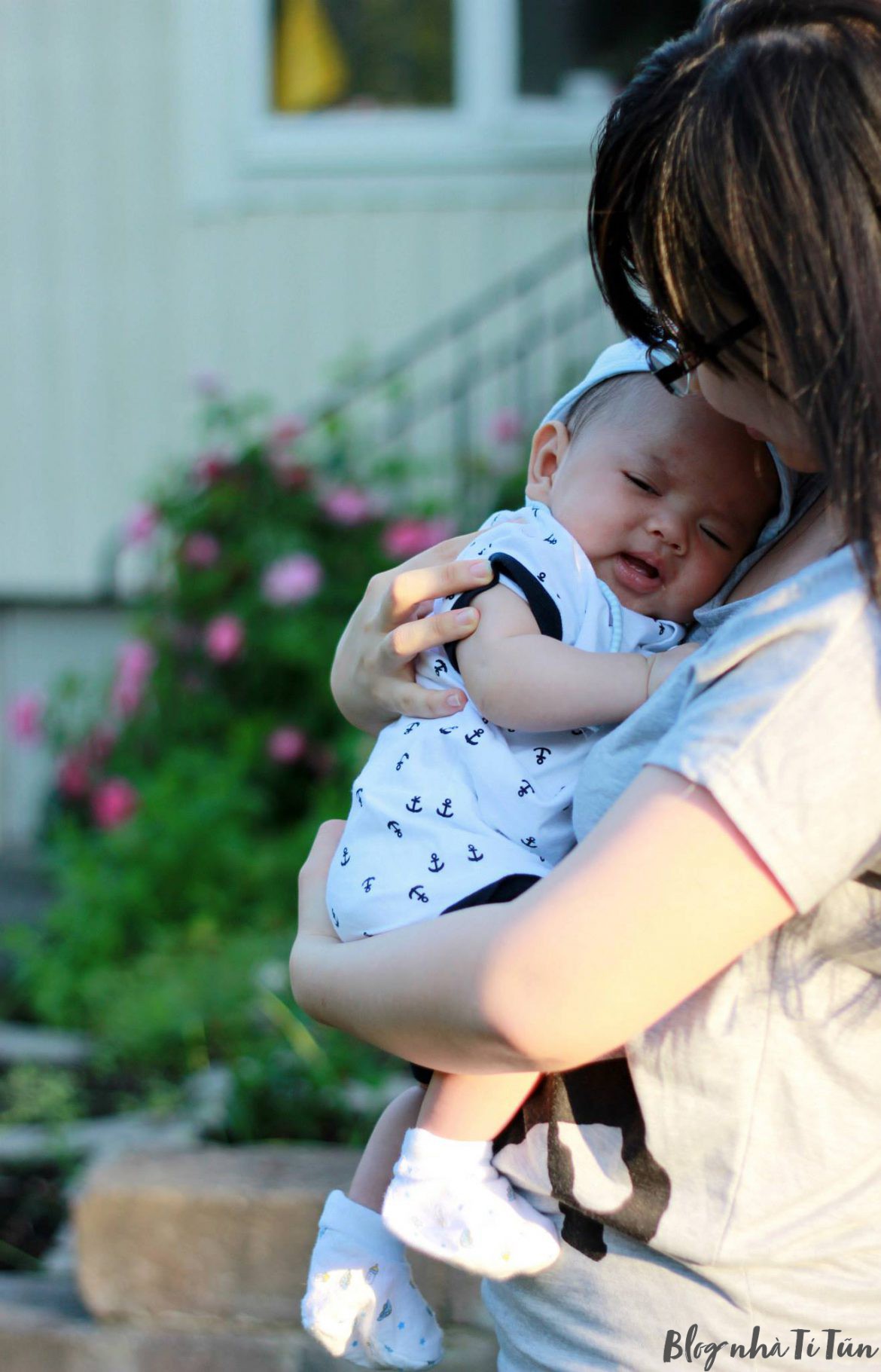 Không chỉ có vậy, cậu cứ ti xong là trớ. Mẹ vừa bế lên, chưa kịp vỗ ợ hơi cho con thì con đã phun như vòi rồng, cho ra hết toàn bộ những gì vừa ăn được (6) . Khóc chóe lên 1 hồi vì trớ xong, cậu lại toét cái miệng và hóng chuyện với bố mẹ (điểm tích cực duy nhất sau giai đoạn này là cậu hóng hớt như người lớn, ê a với bà nội cứ như hiểu sự đời lắm lắm  :-S).